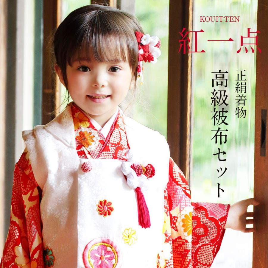 七五三 着物 3歳 女の子 被布 セット 7点 赤 白 鹿の子 花 刺繍 紅一点 ブランド 正絹 購入 8 6 こだわりきもの専門店kisste 通販 Yahoo ショッピング